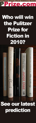The Pulitzer Prize for 2009 will be announced on April 20, 2009 at 3:00PM, and once again the question is who will win for fiction? Last year, a research scientist and Modern Firsts/Pulitzer Prize Award Books collector conducted a regression analysis and built a model that produced a list of the 10 books that were most likely to win the Pulitzer Prize for 2008. The model performed well - the third book on the list was the winner, and the fifth book on the list was a finalist. So we are running the list again this year.